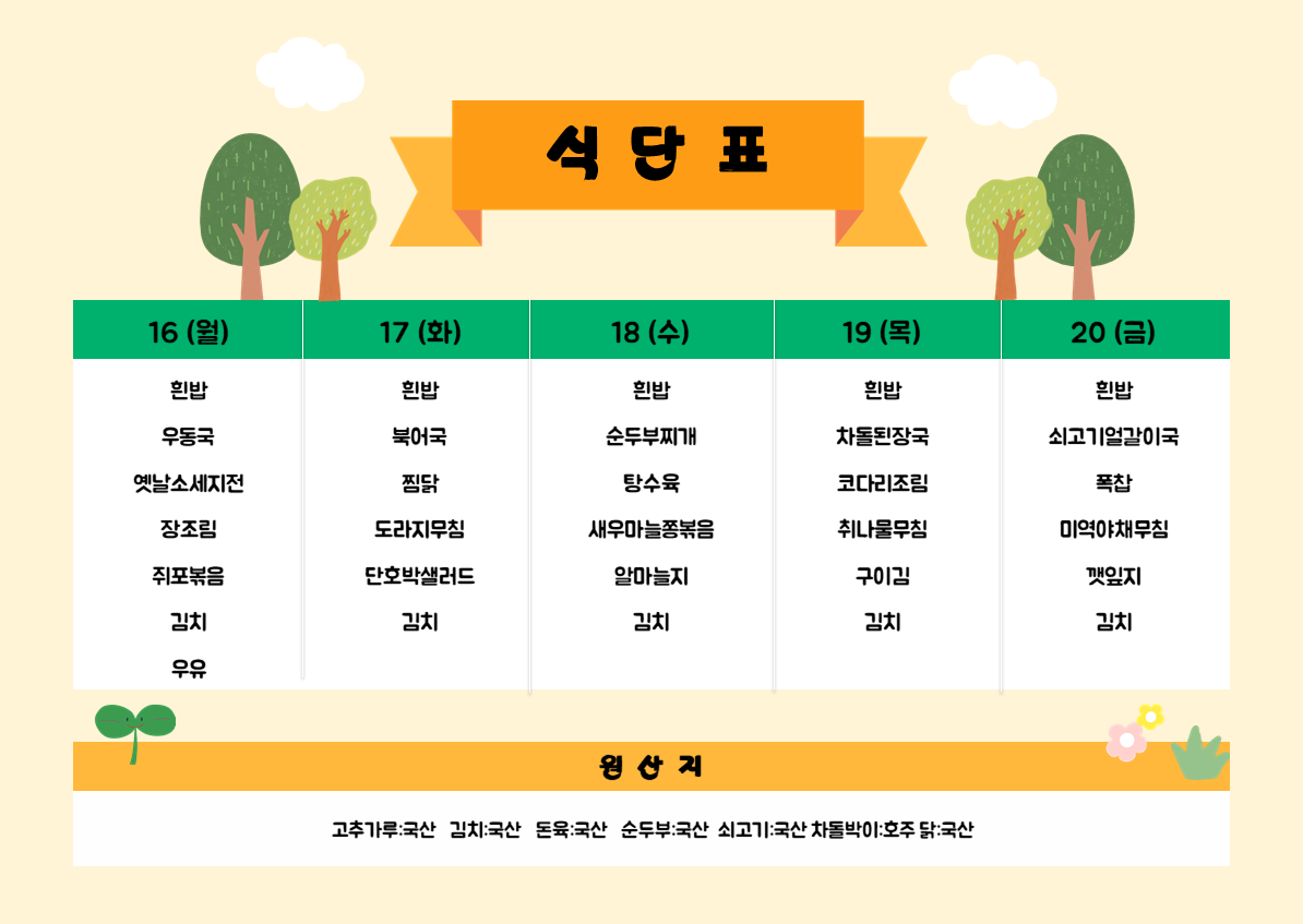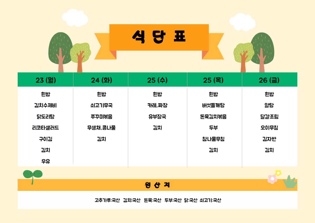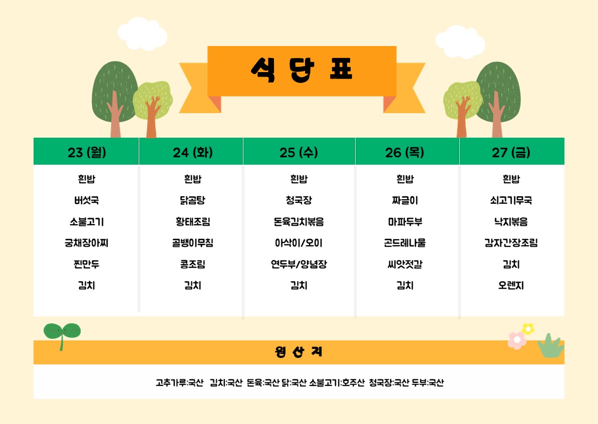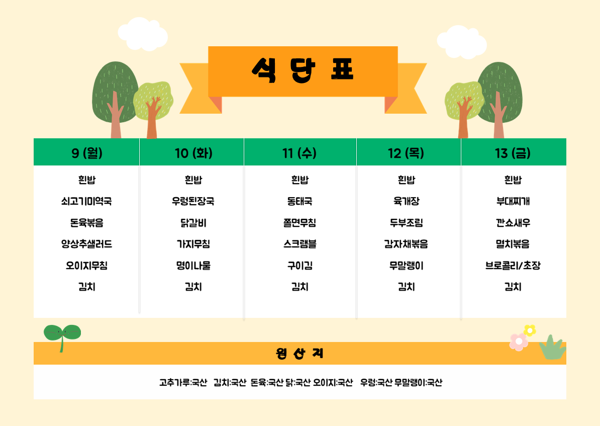 2026년 3월9-13일 식단표입니...