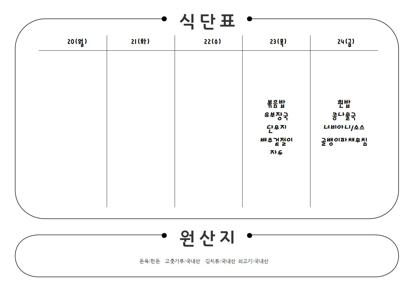 2022년 5월23-27일 식단표
