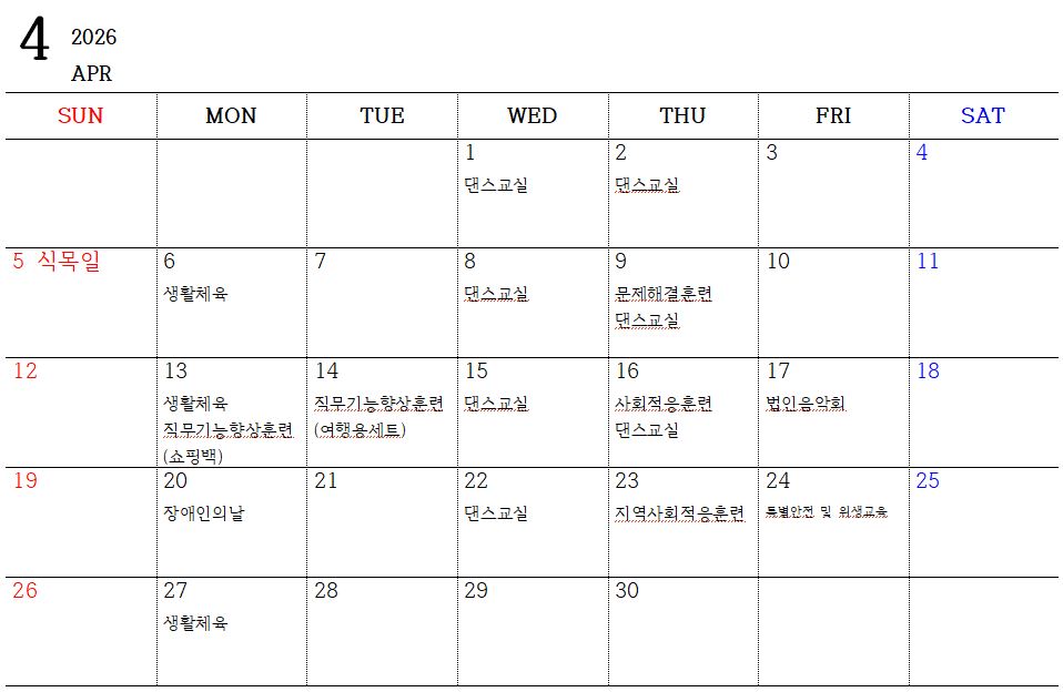 2026년 4월 월간계획표
